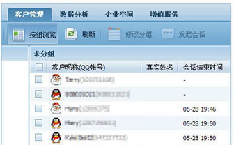 每个工号可在与客户会话过程中,记录下来来访客户的客户资料。通过企业QQ提供的客户资料编辑、分组管理,方便您建立企业自己的客户资料管理库。当客户上线时,系统都会准确识别显示客户所属的类别和身份,便于客服人员提供针对性服务,提高在线咨询和营销效率。企业QQ客户数上限可达25万,足够装载您的客户资源。